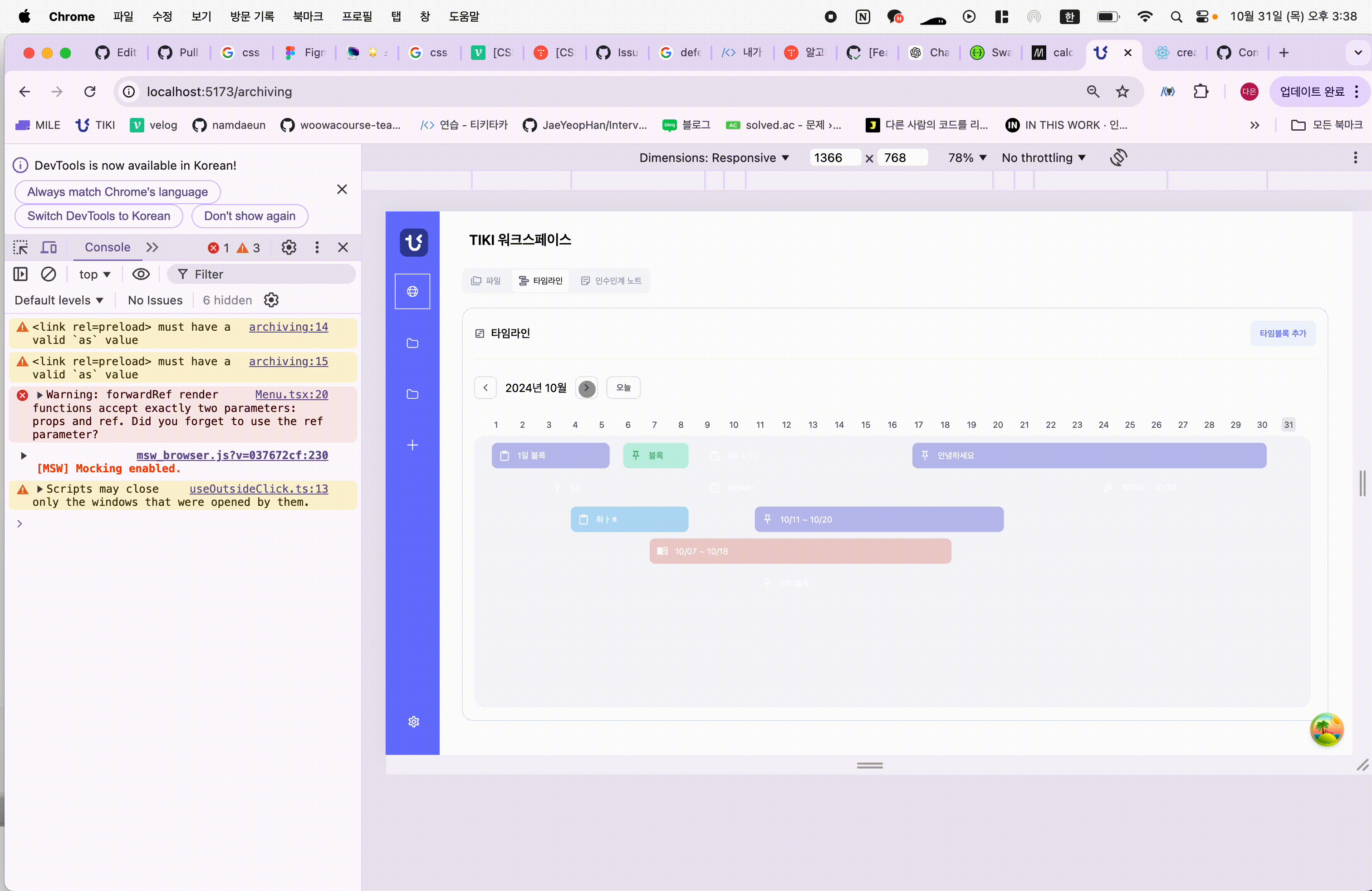 게다가 absolute 방식 배치 때문에, 브라우저 창 크기를 줄였을 때 타임블록이 잘리는 문제까지 추가로 발견됐어요.