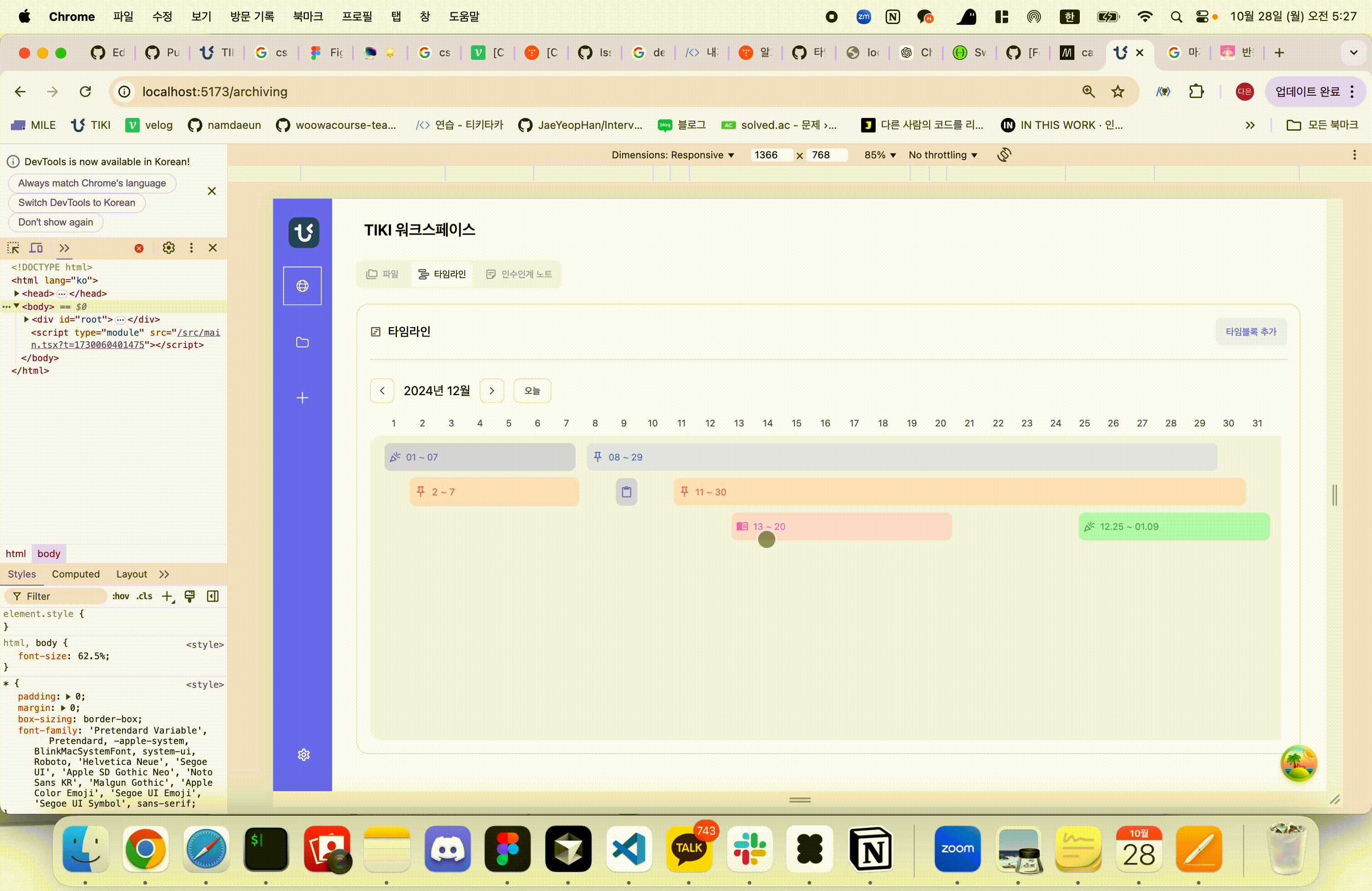 타임라인에 표시할 블록들의 위치와 너비는 서버에서 전달받은 startDate와 endDate를 기준으로 계산했어요.